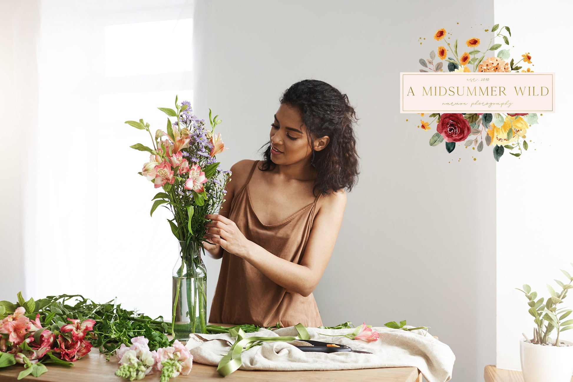 This business branding logo is perfect for modern boho boutiques, rustic farmhouse shops. florists, bloggers and influencers, beauty and wellness brands, wedding event planners, fashion labels, natural organic products, and more. The whimsical and detailed branding and watermarks are also ideal for outdoor, natural light, wedding, or newborn photographers to showcase their work and design their website.