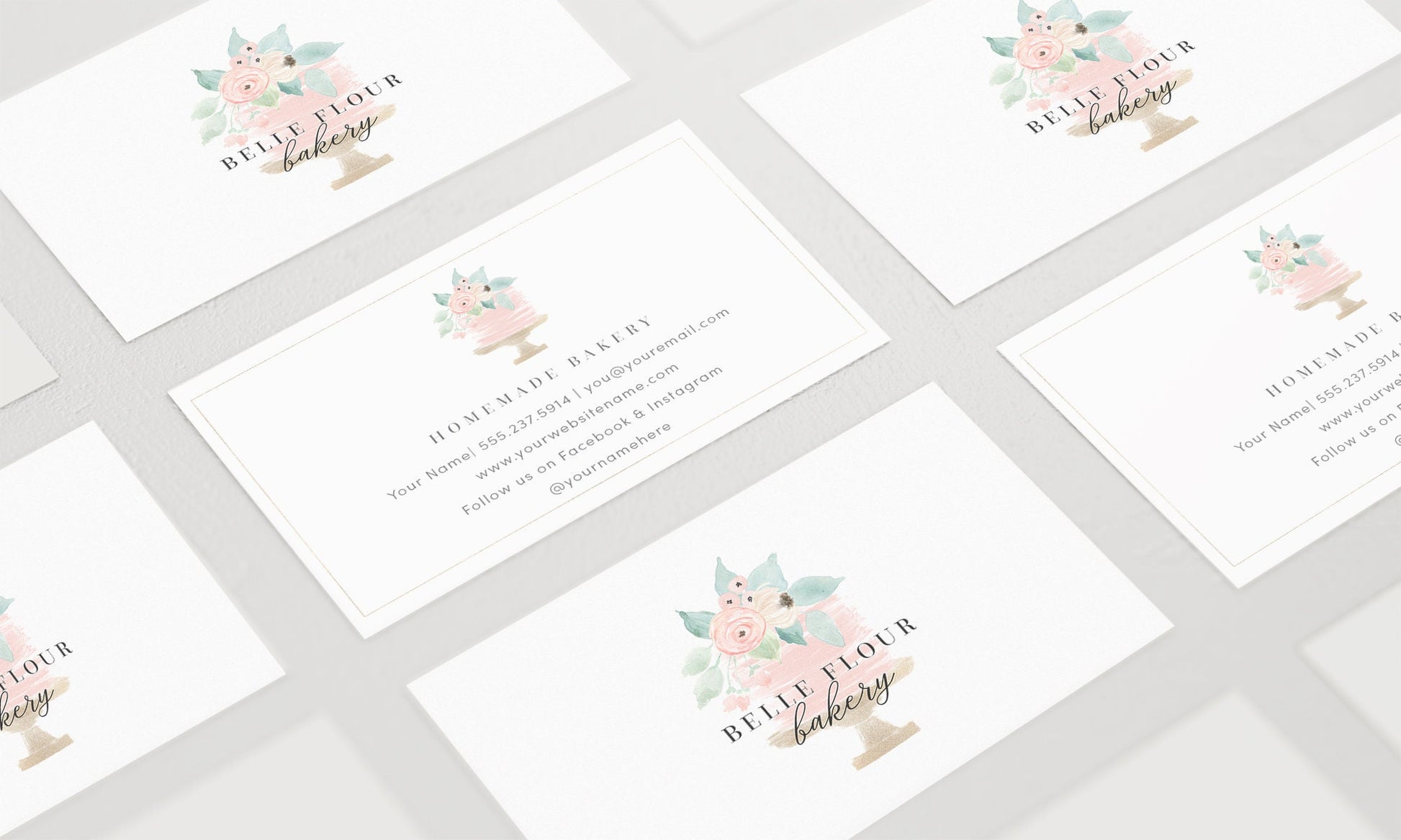 Belle Flour Bakery | Premade Business Card Design | Cake, Wedding, Floral