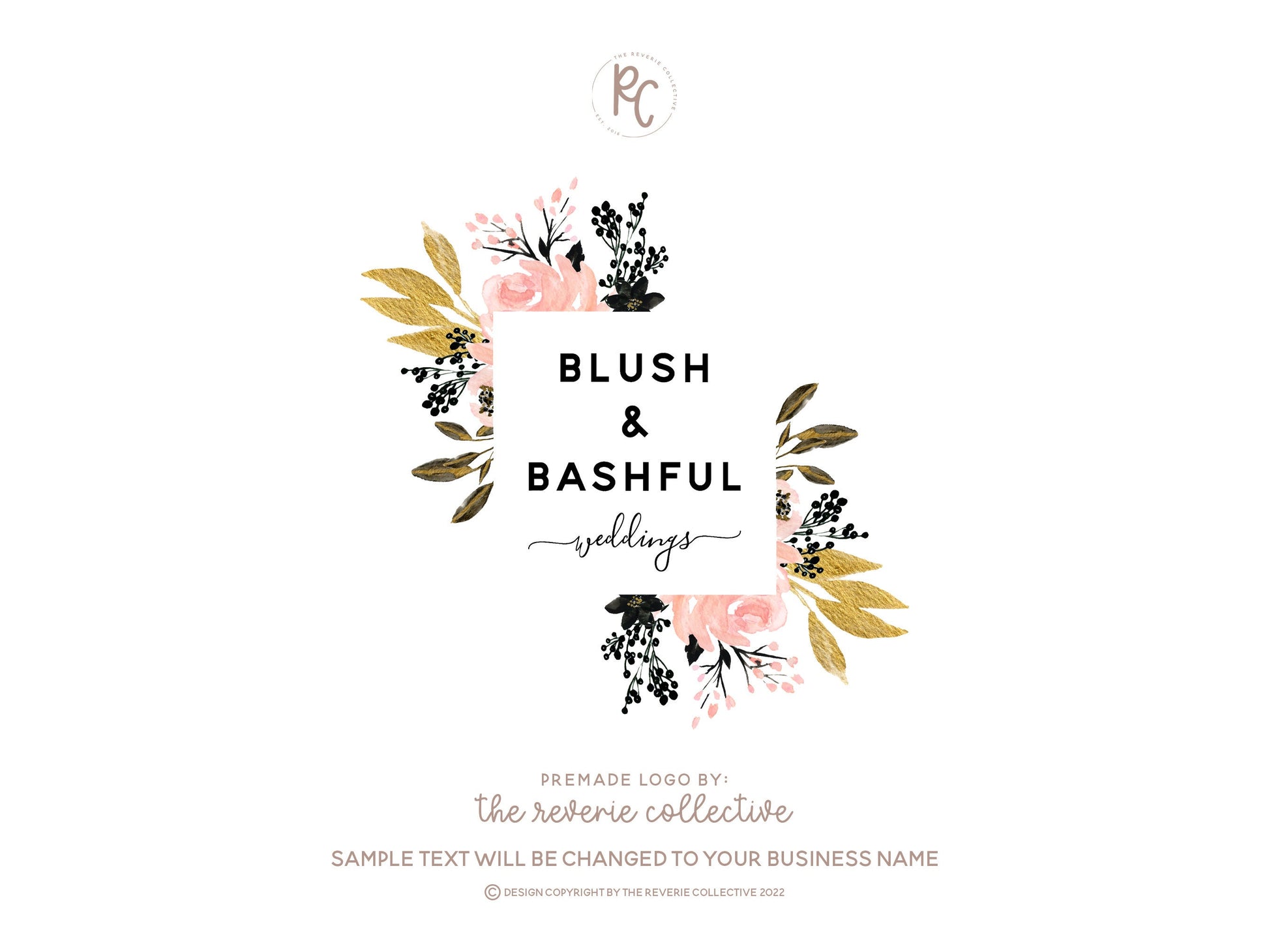 Blush & Bashful | Premade Logo Design | Watercolor Floral, Flower Frame, Pink Roses