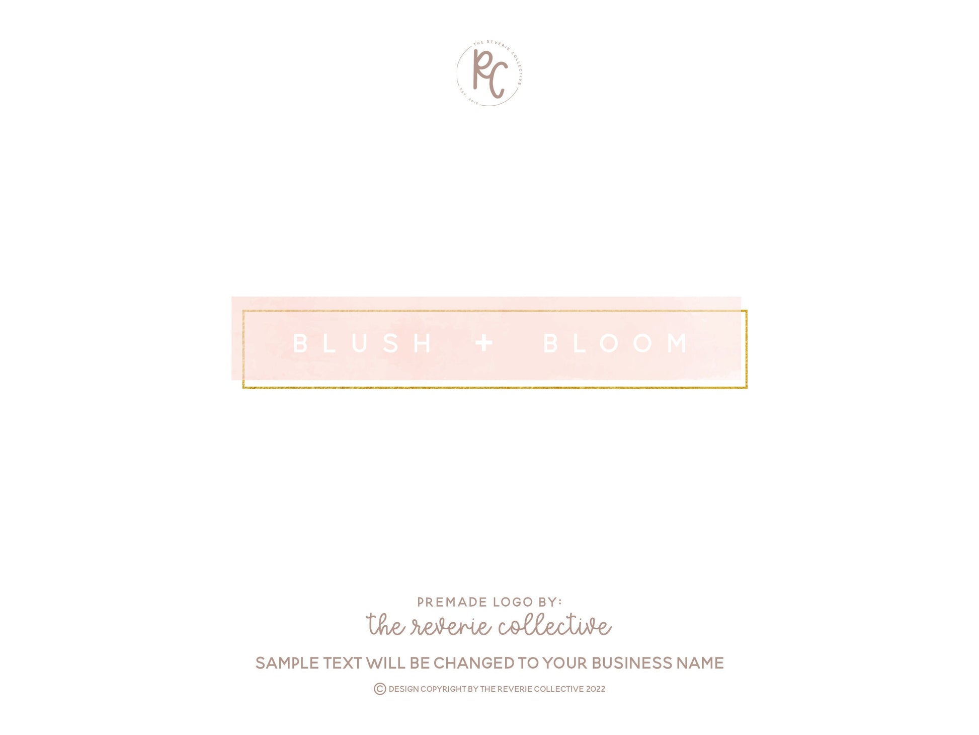 Blush + Bloom | Premade Logo Design | Watercolor, Geometric, Gold Foil, Wedding