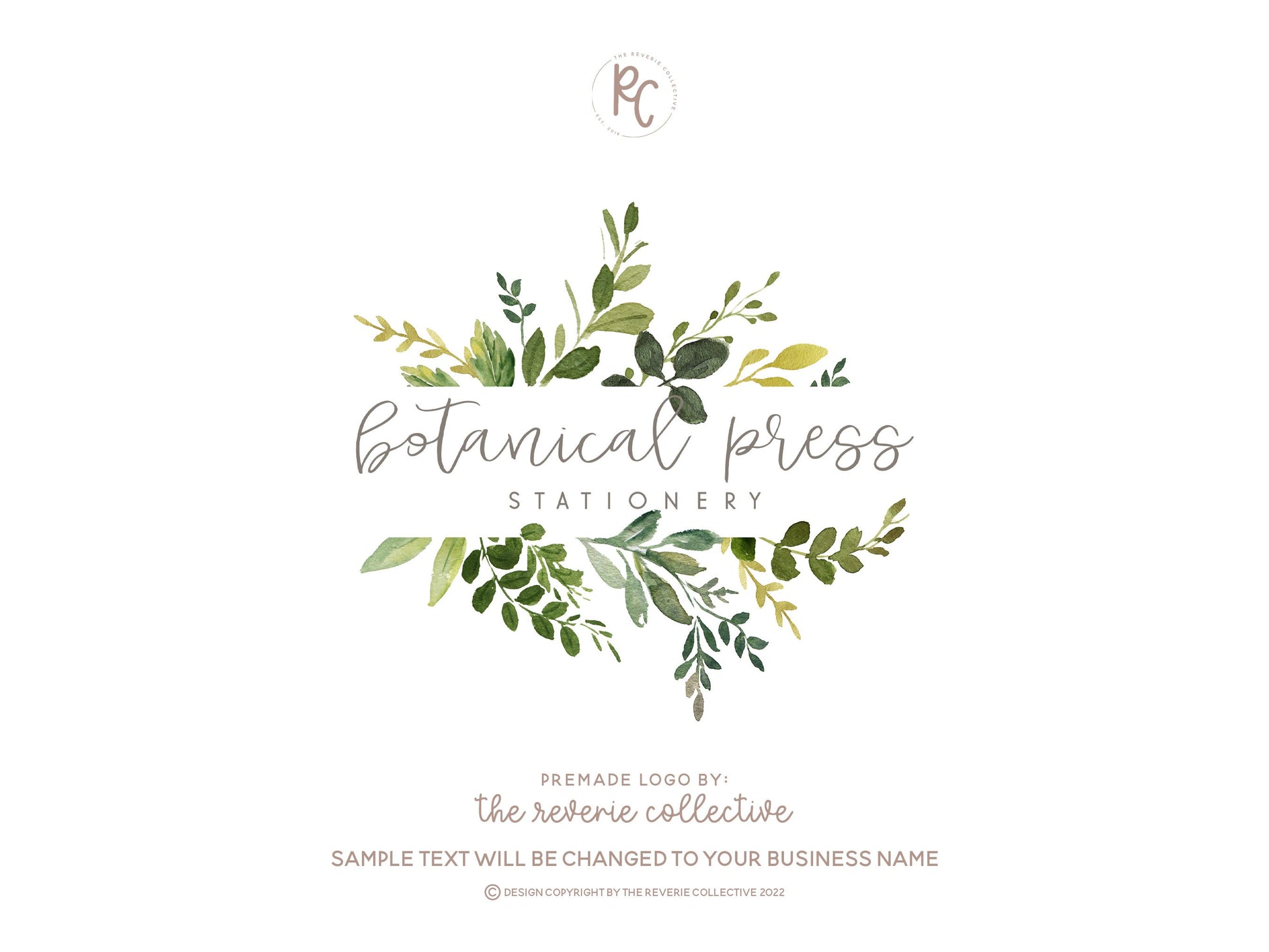 Botanical Press | Premade Logo Design | Watercolor, Botanical, Greenery, Leaves