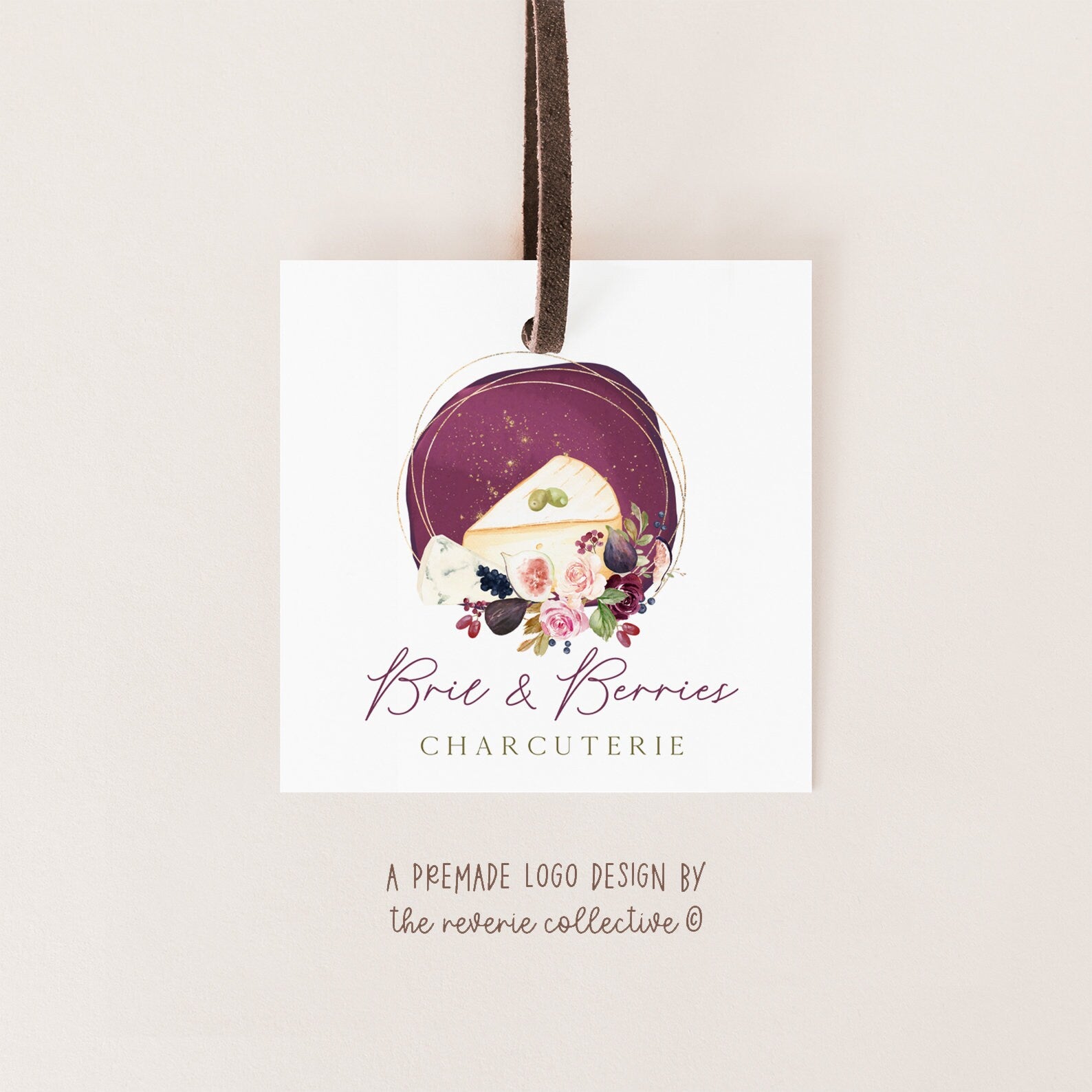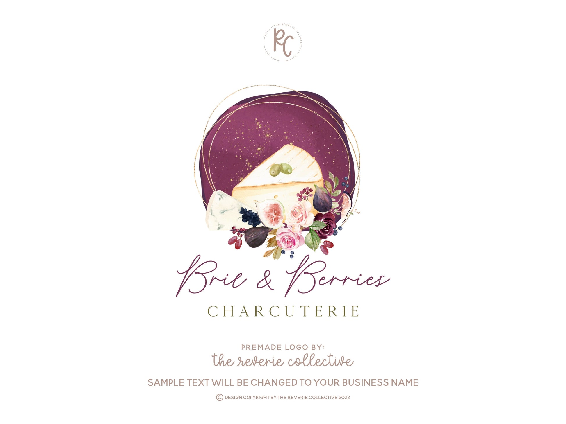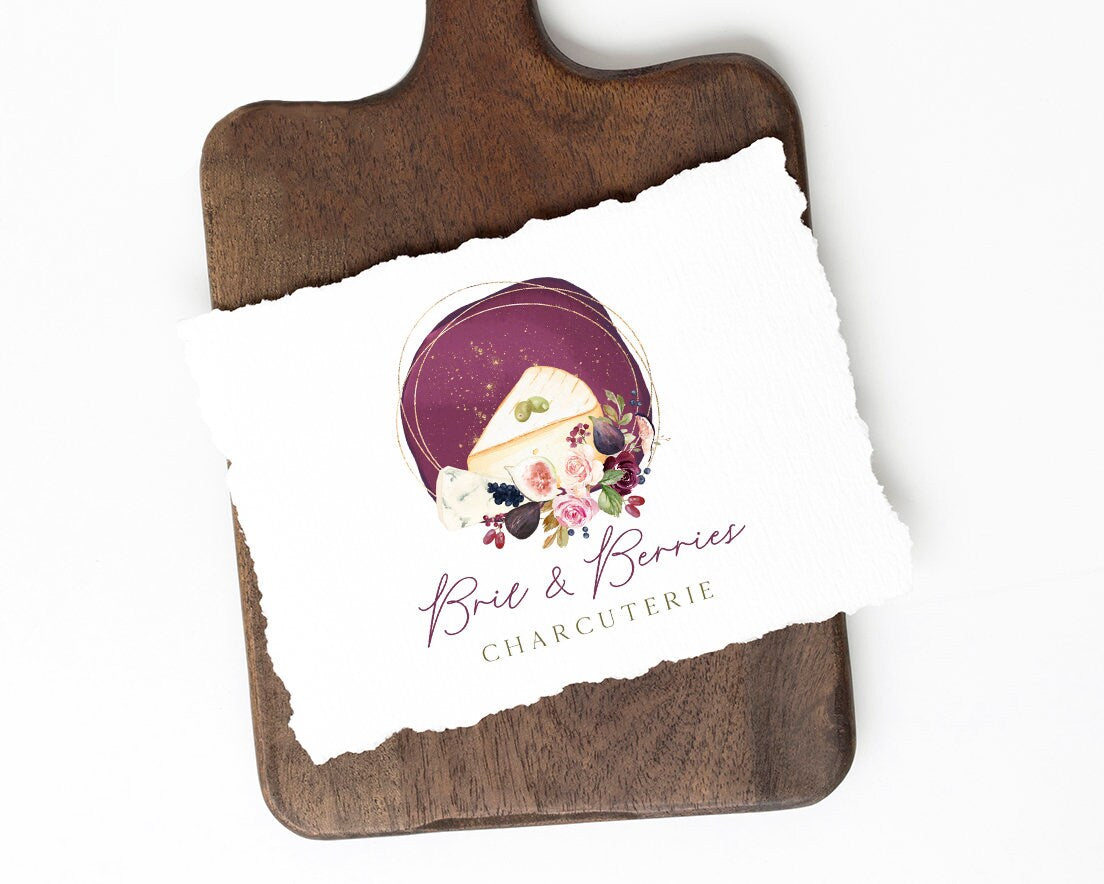 Brie & Berries | Premade Logo Design | Charcuterie, Cheese Board, Food, Herb
