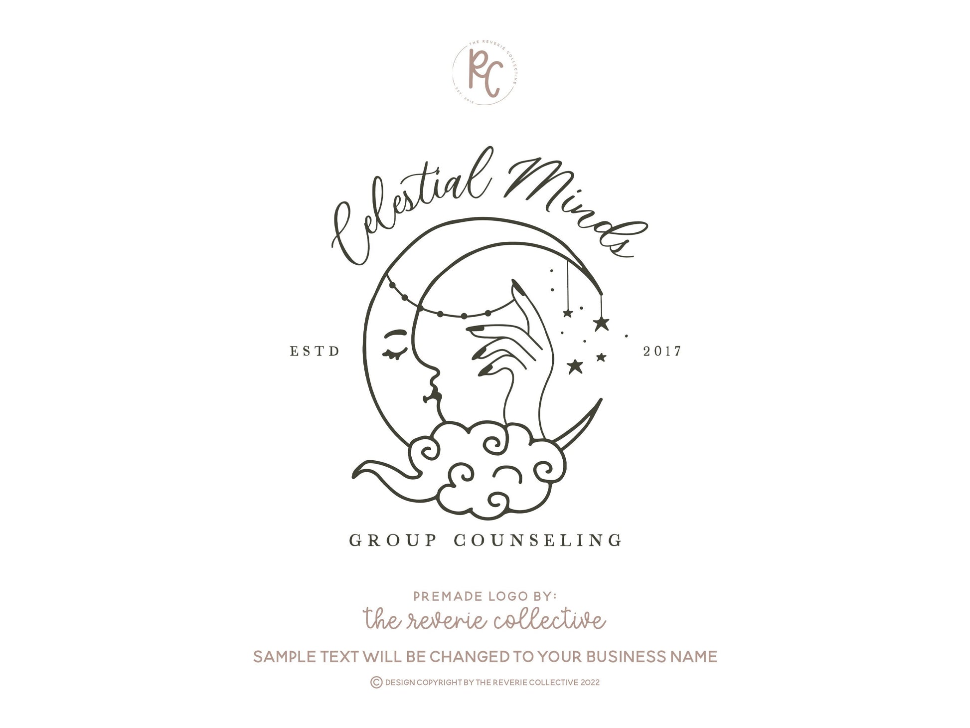 Celestial Minds | Premade Logo Design | Crescent Moon, Modern Boho, Line Art