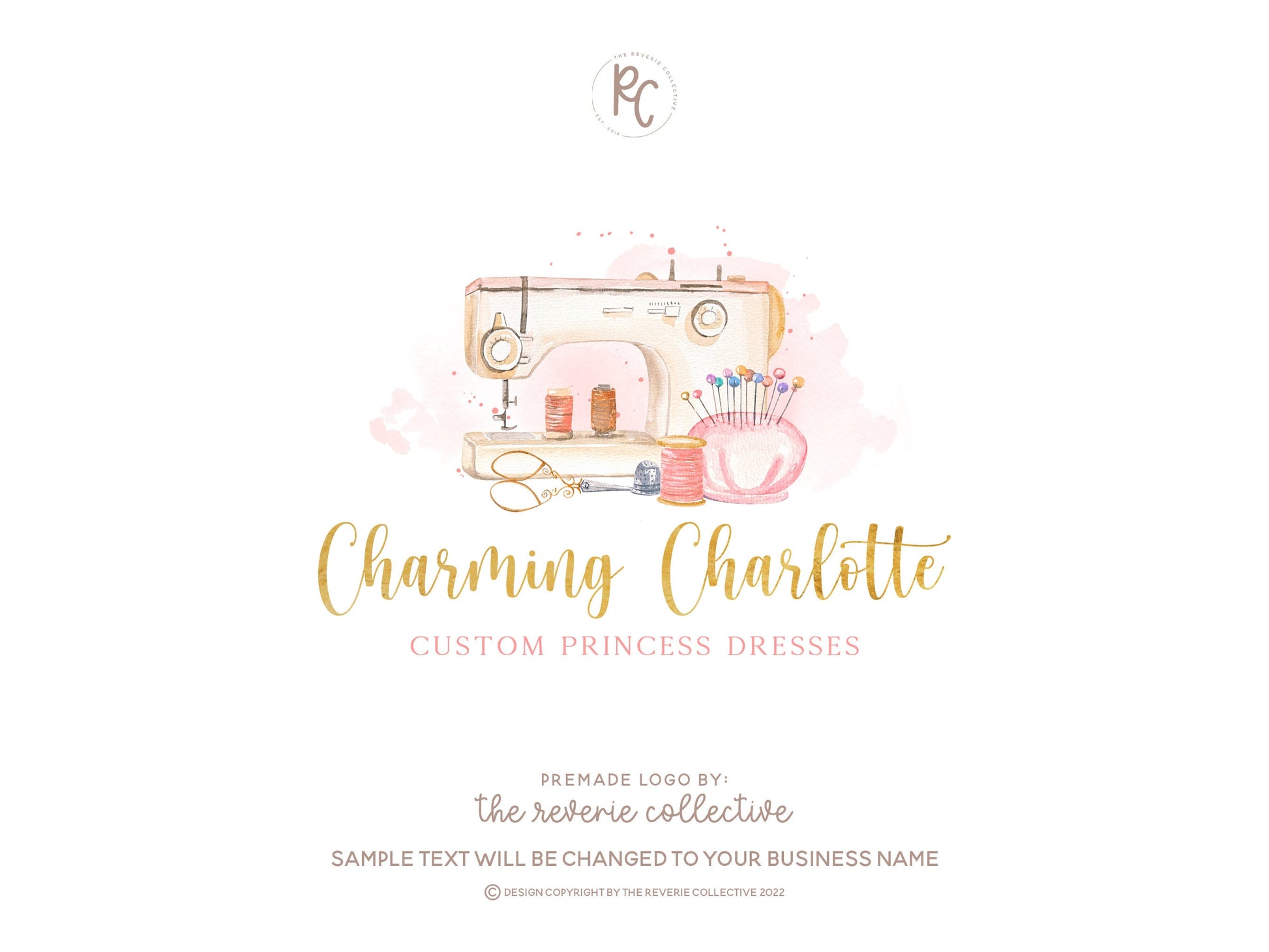 Charming Charlotte | Premade Logo Design | Sewing Machine, Spool, Thread, Needle, Scissors