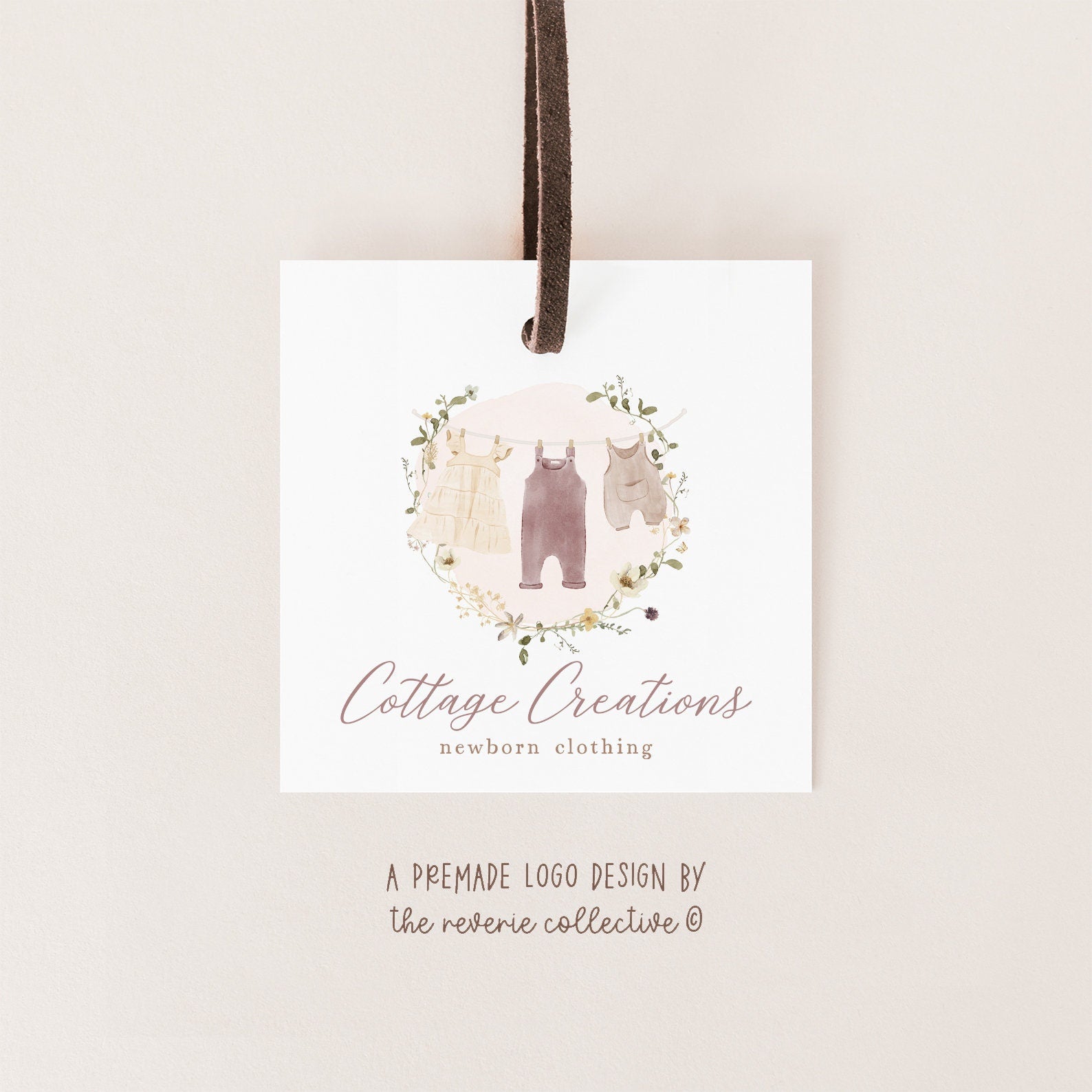 Cottage Creations | Premade Logo Design | Baby Clothes, Newborn Romper, Clothesline