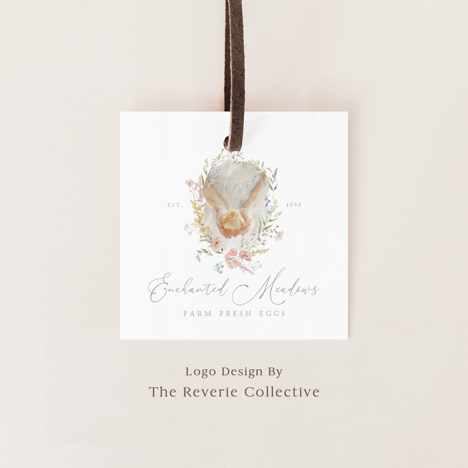 Enchanted Meadows | Premade Logo Design | Farm Girl Hands, Baby Chick, Chicken Hen