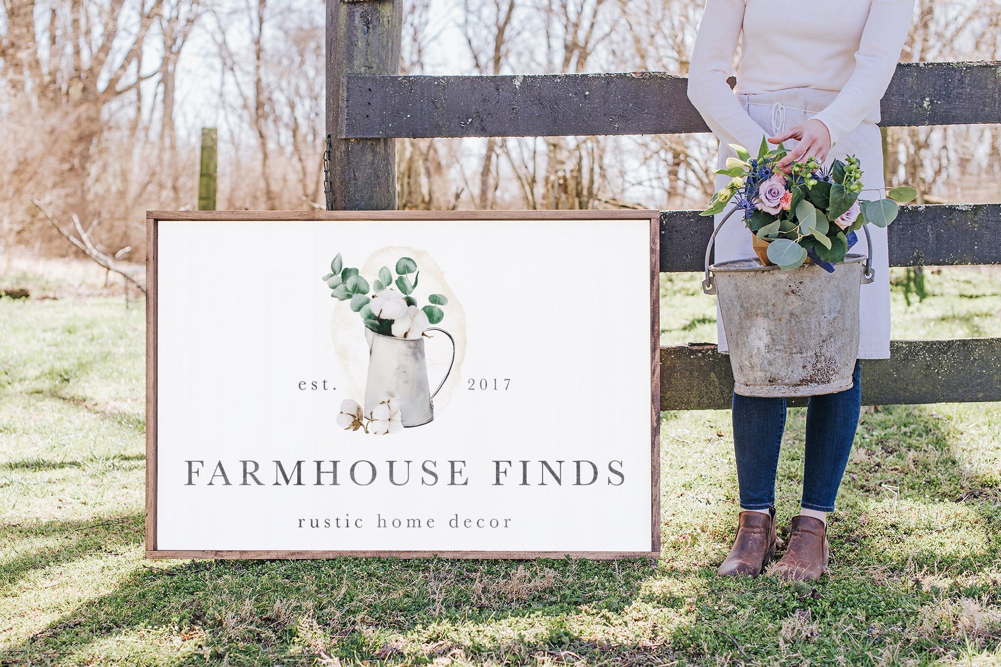 Farmhouse Finds | Premade Logo Design | Eucalyptus, Cotton, Pitcher, Jug