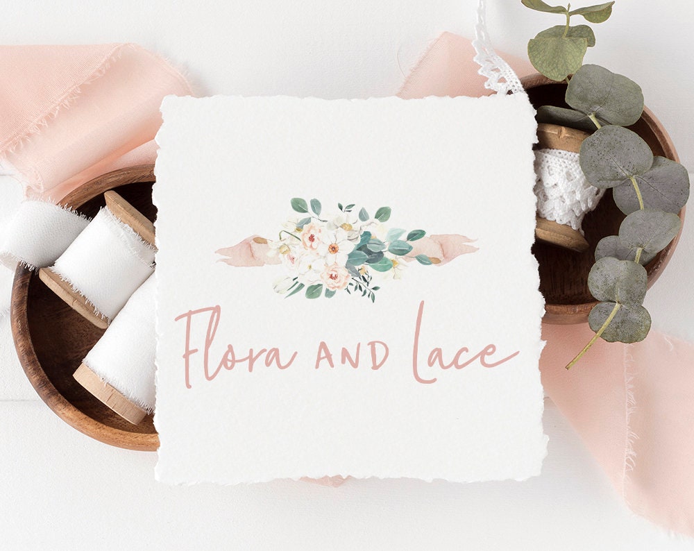 Flora and Lace | Premade Logo Design | Watercolor Floral, Pastel, Ribbon, Farmhouse