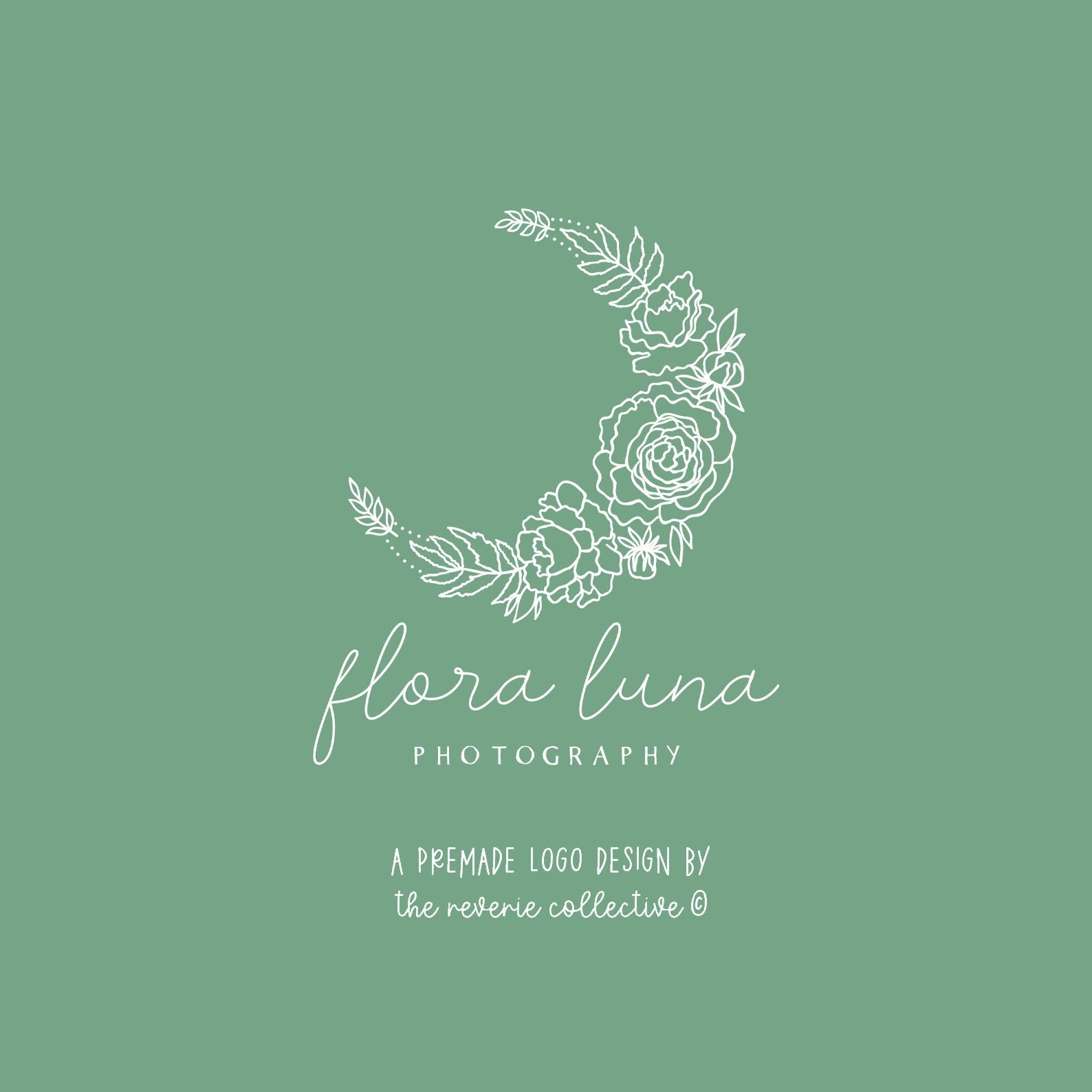 Flora Luna | Premade Logo Design | Boho, Crescent Moon, Floral, Line Art