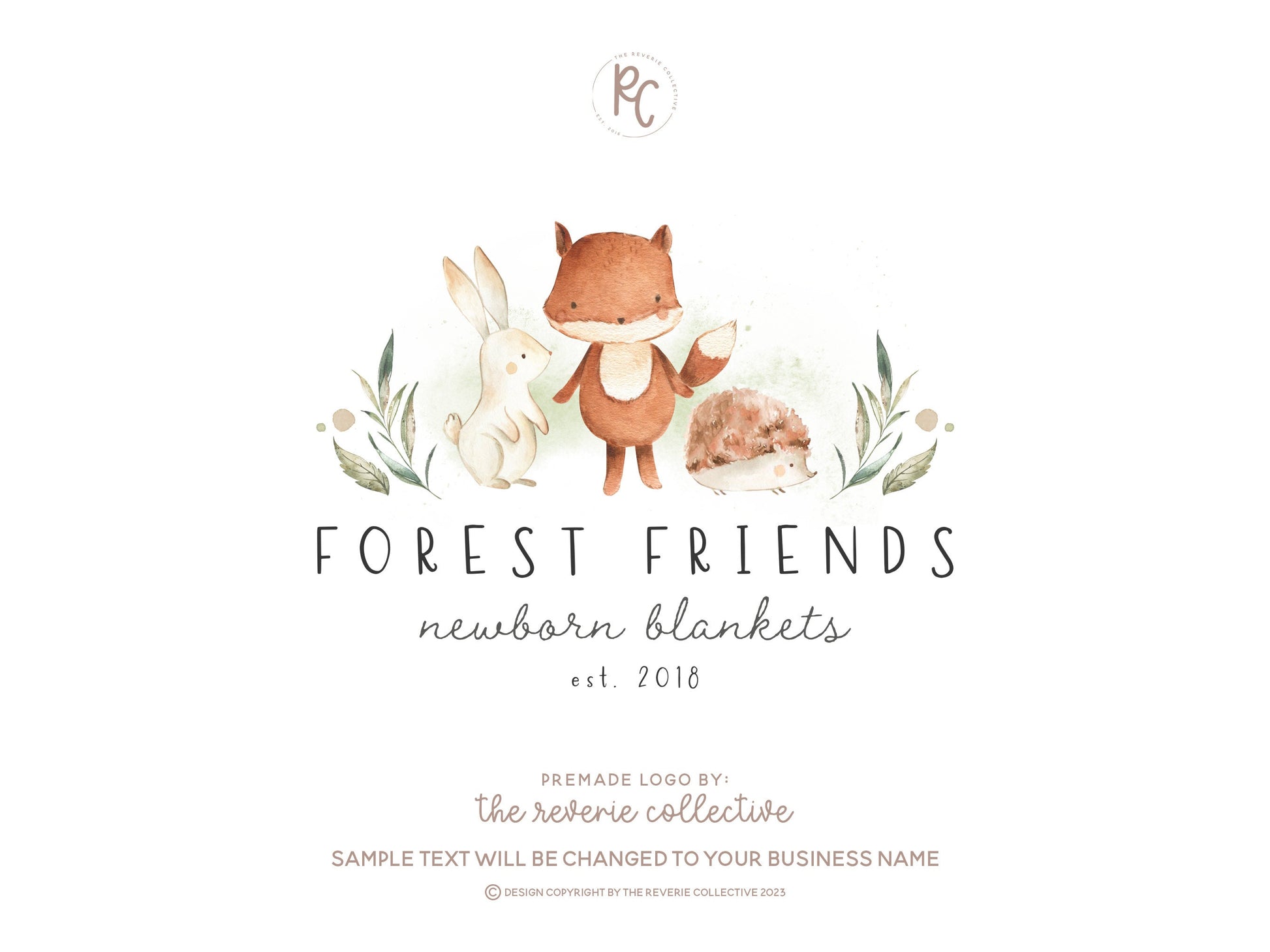 Forest Friends | Premade Logo Design | Hedgehog, Fox, Bunny Rabbit