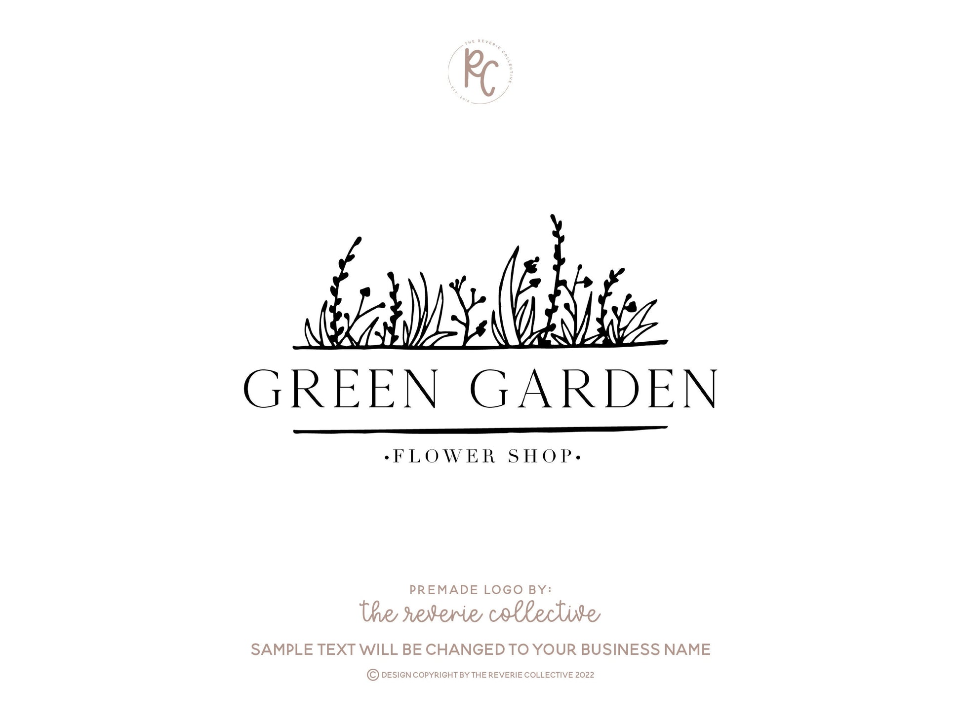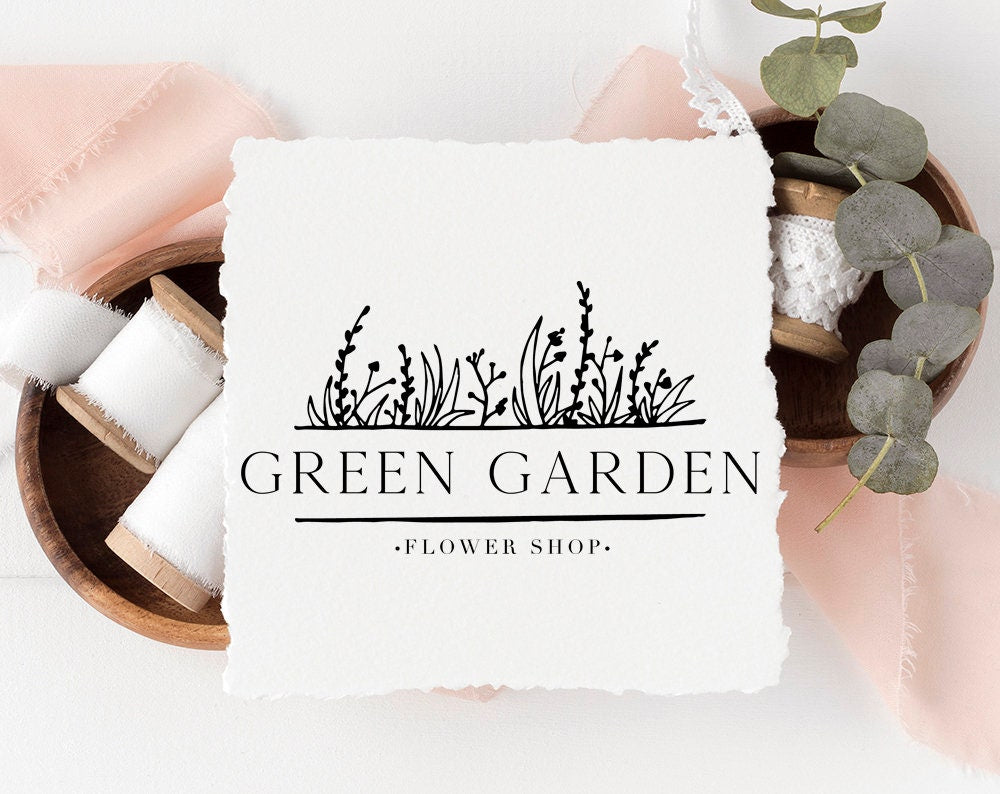 This premade logo design in a hand drawn flower garden style is a quick and affordable way to launch your business in just a few days!