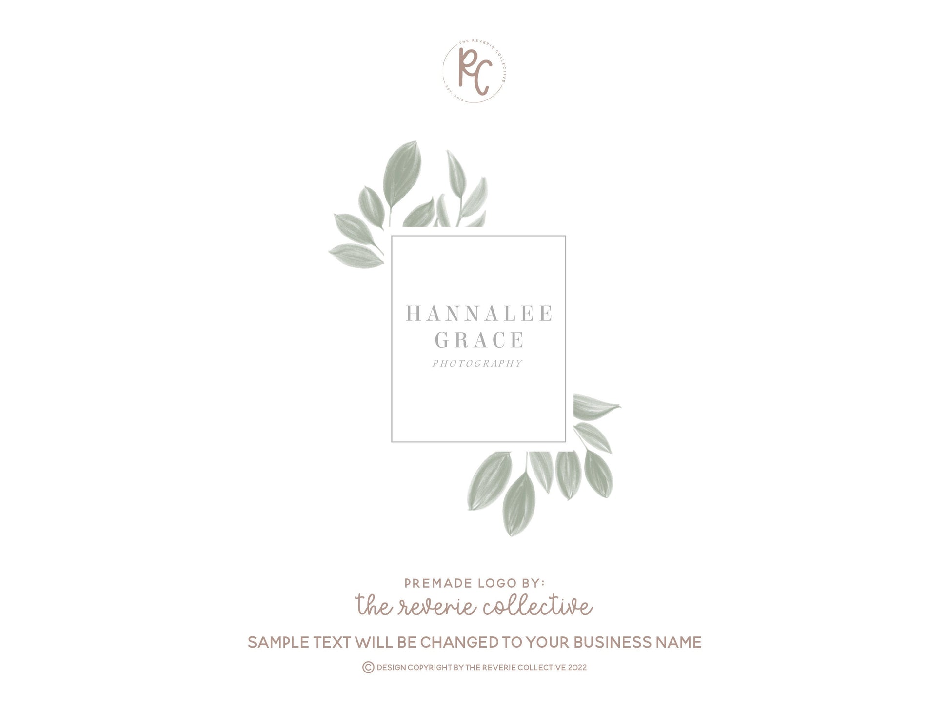 Hannalee Grace | Premade Logo Design | Leaf Frame, Botanical, Nature, Greenery