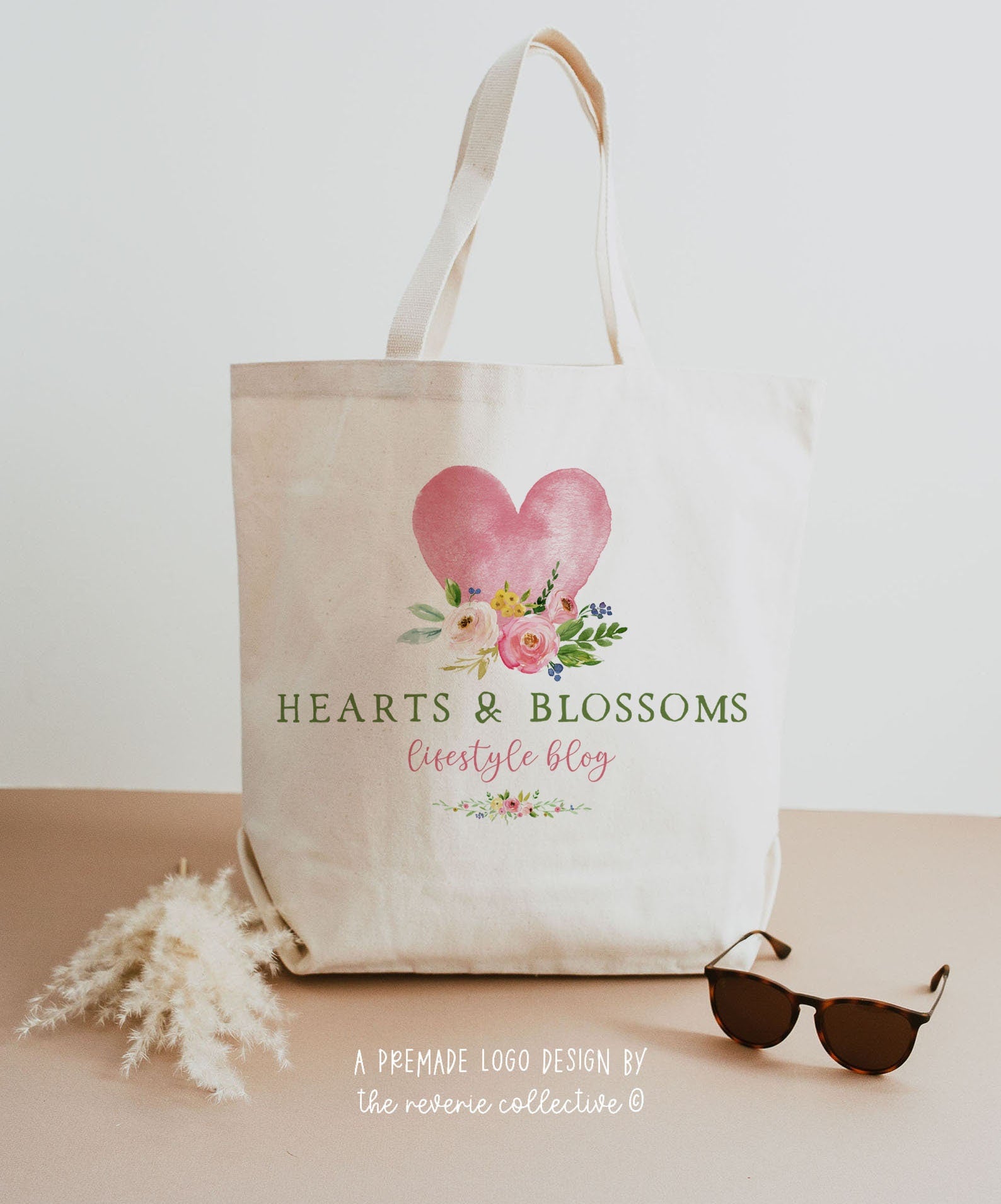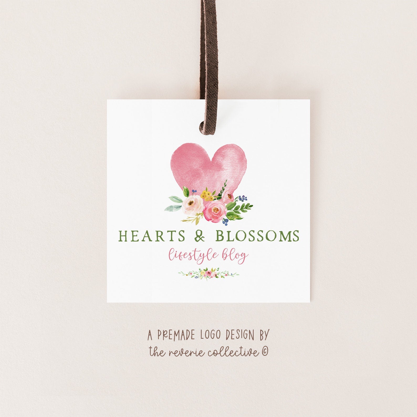 Hearts & Blossoms | Premade Logo Design | Heart, Watercolor Floral, Colorful, Preppy