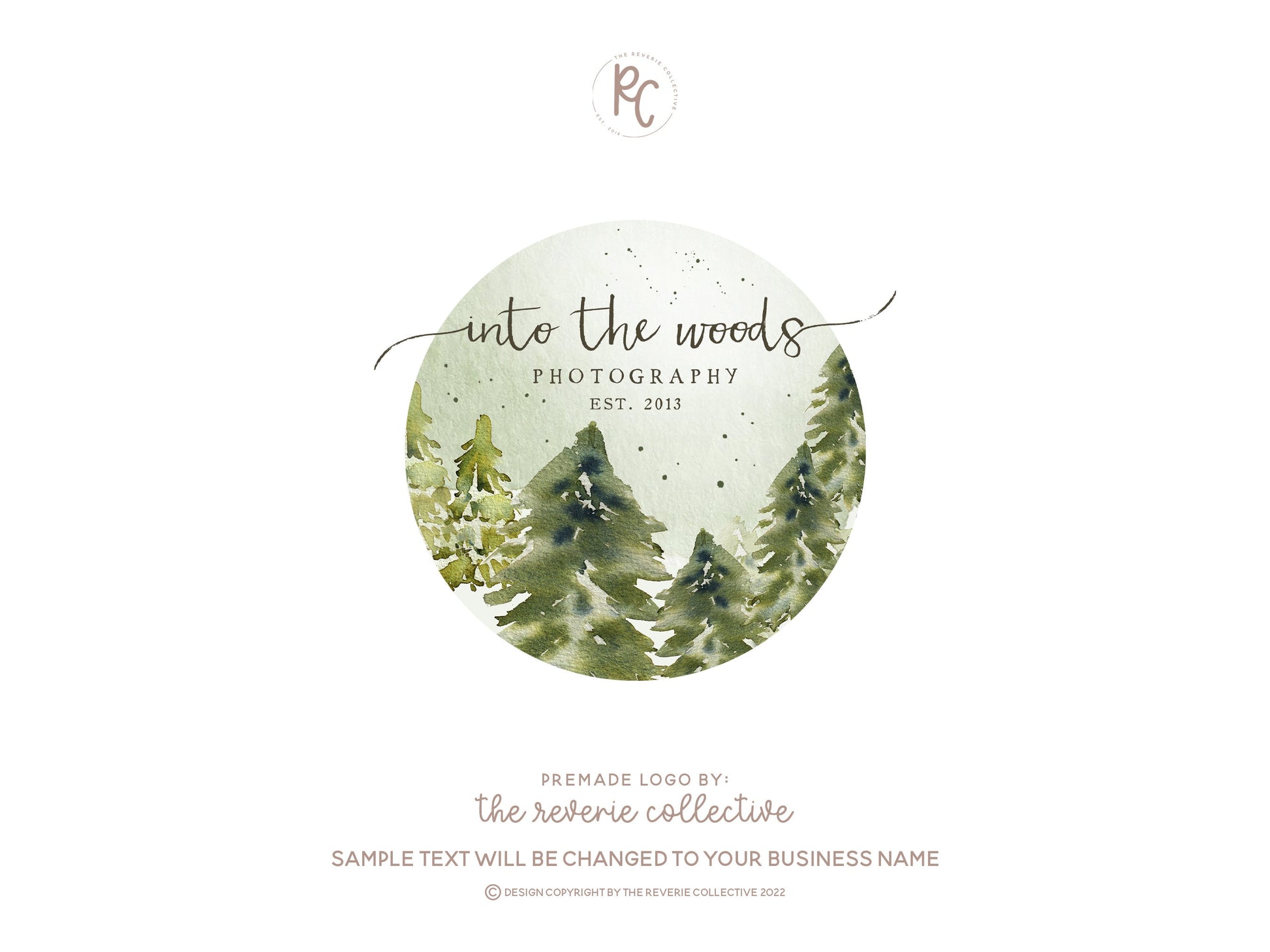 This premade logo design in a watercolor rustic woodland forest style is a quick and affordable way to launch your business in just a few days!