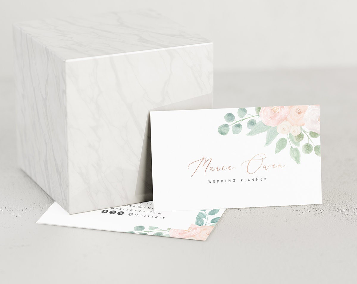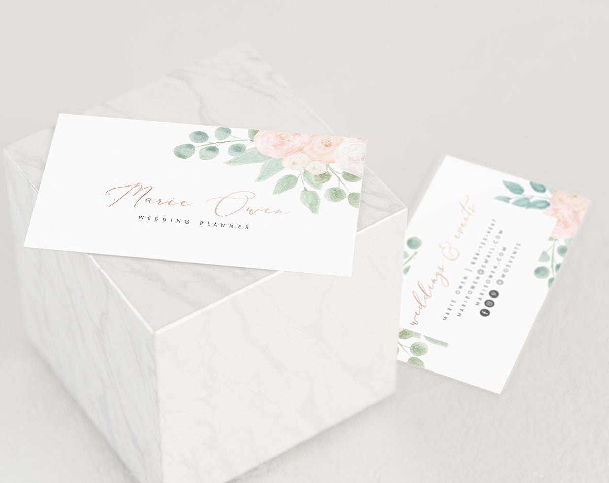 Marie Owen | Premade Business Card Design | Floral, Pastel, Watercolor, Rose Gold