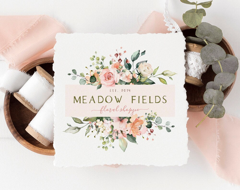 Meadow Fields | Premade Logo Design | Floral Frame, Wreath, Shabby Chic, Farmhouse