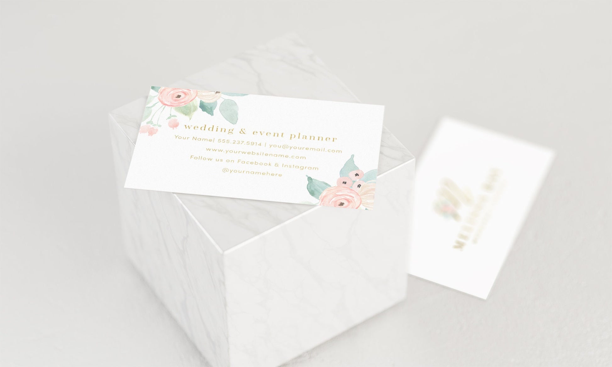 This premade business card design in a preppy watercolor floral monogram style is a quick and affordable way to print out fresh, new business cards either at home or online!