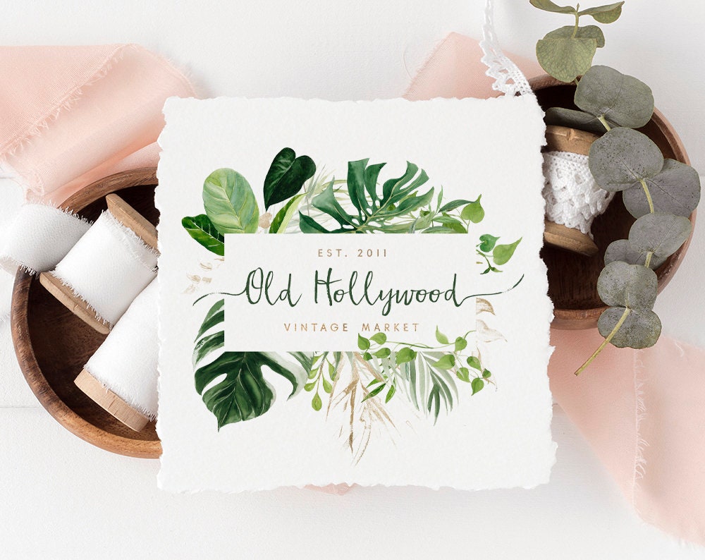 Old Hollywood | Premade Logo Design | Palm Frond, Botanical, Greenery, Leaf Frame