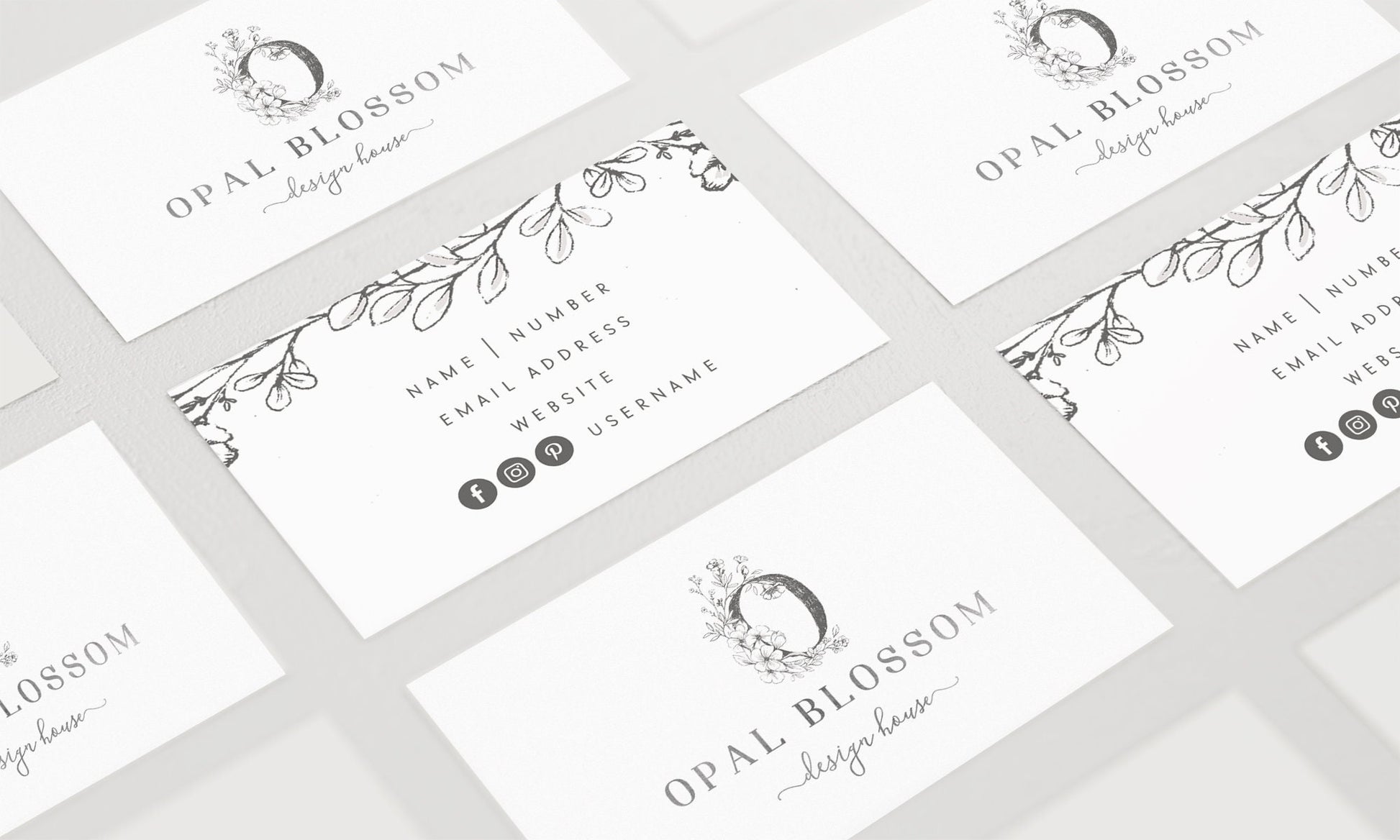 Opal Blossom | Premade Business Card Design | Fine Art, Farmhouse, Hand Drawn