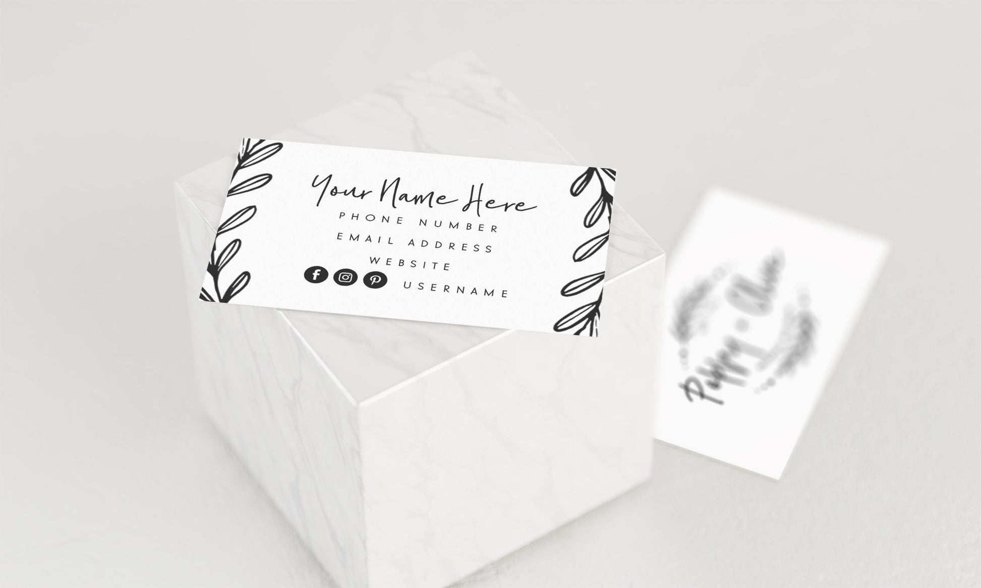 This premade business card design in a hand drawn farmhouse laurel style is a quick and affordable way to print out fresh, new business cards either at home or online!