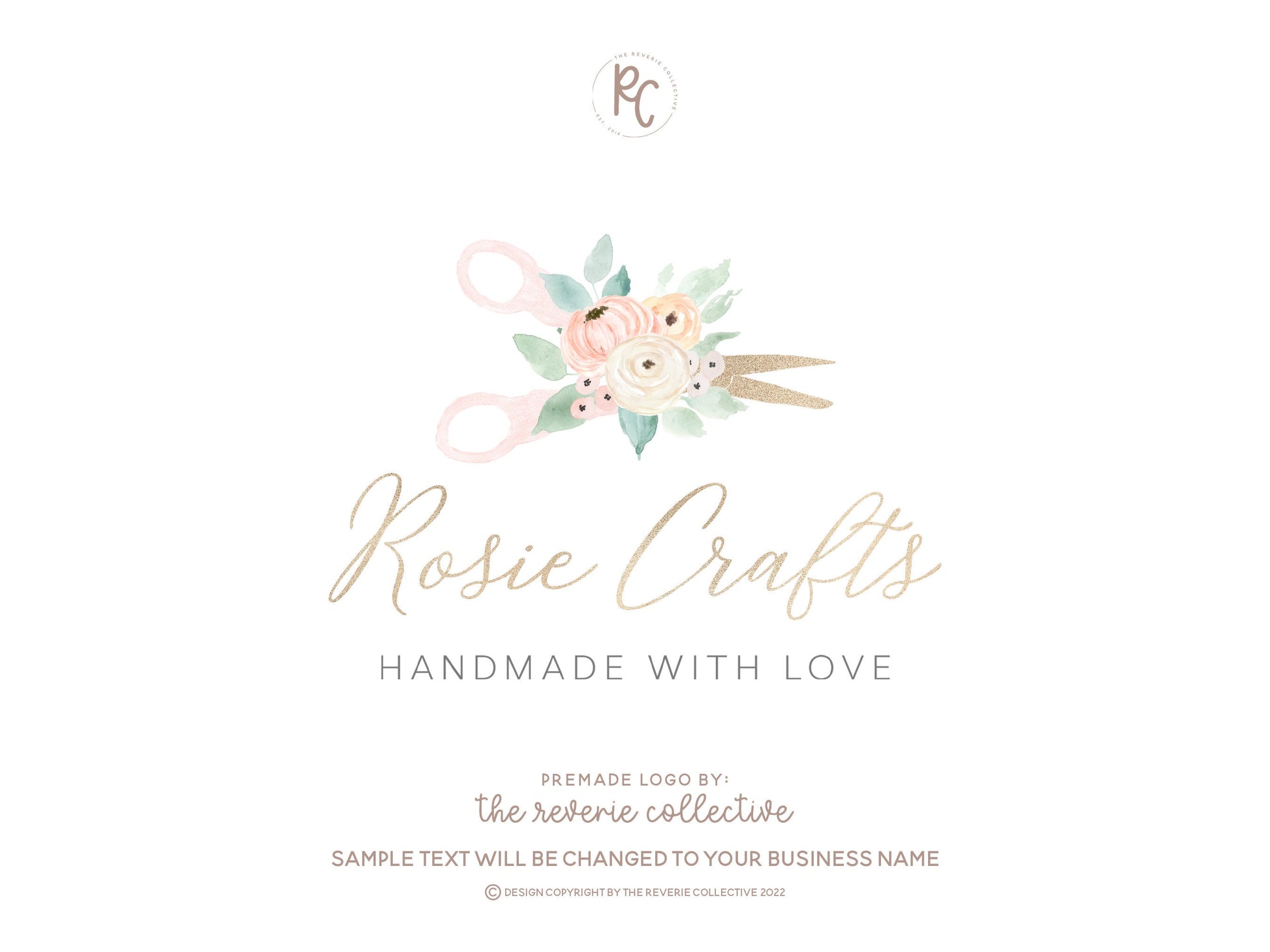 Rosie Crafts | Premade Logo Design | Scissors, Floral, Pastel, Craft, Feminine