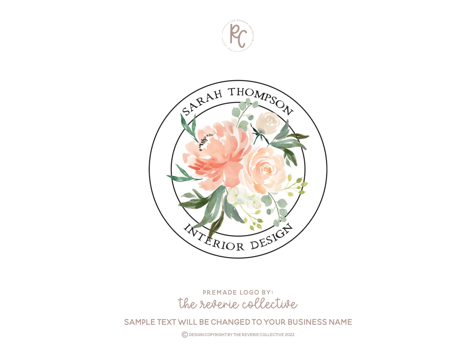 Sarah Thompson | Premade Logo Design | Watercolor Floral, Circle, Farmhouse, Boutquet