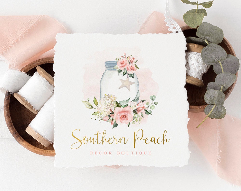 Southern Peach | Premade Logo Design | Mason Jar, Floral, Farmhouse, Shabby Chic
