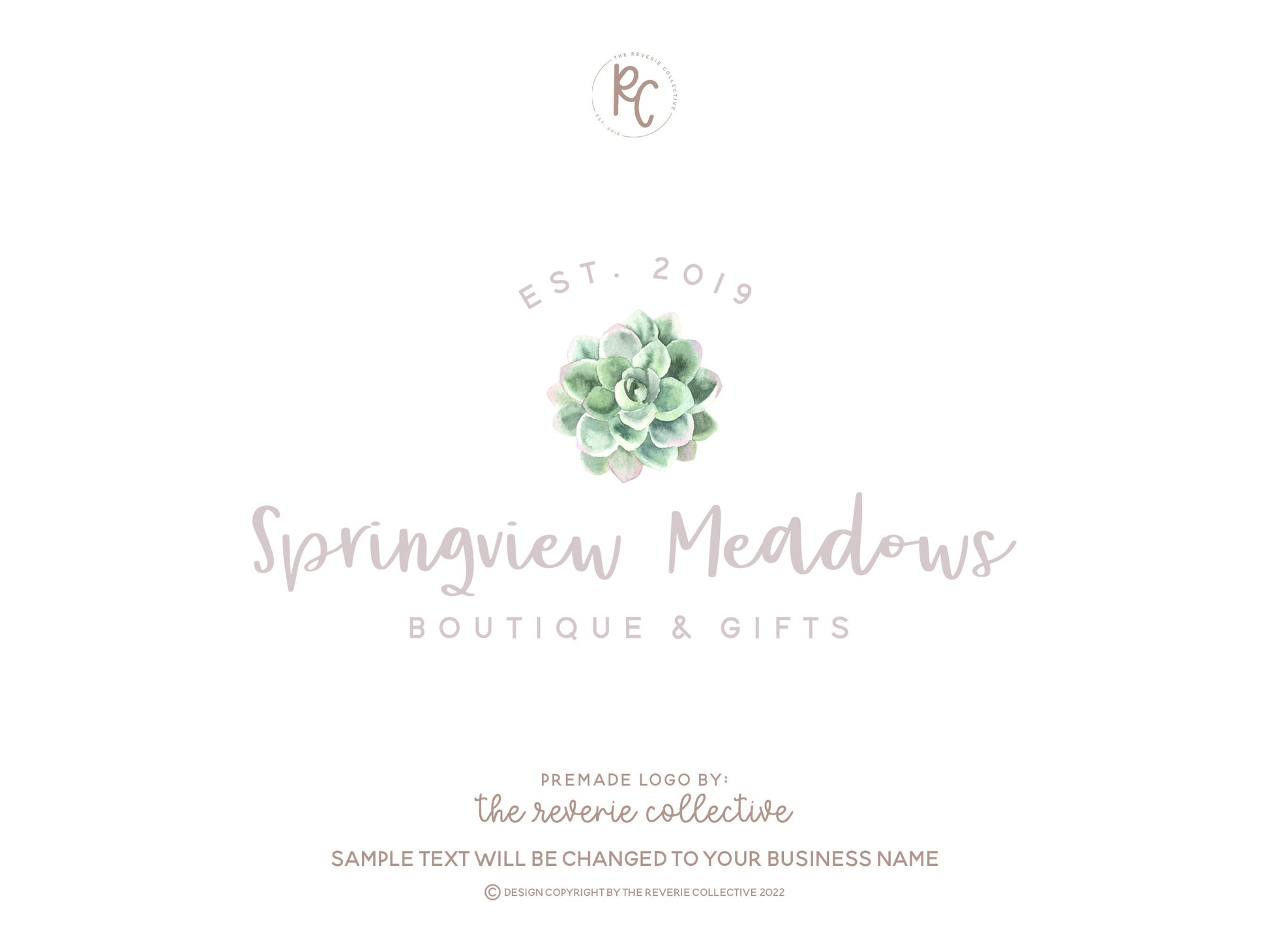 Springview Meadows | Premade Logo Design | Watercolor, Succulent, Farmhouse