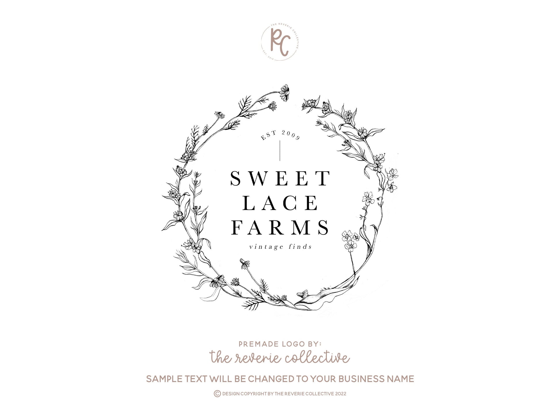 Sweet Lace Farms | Premade Logo Design | Botanical, Rustic, Romantic, Wreath