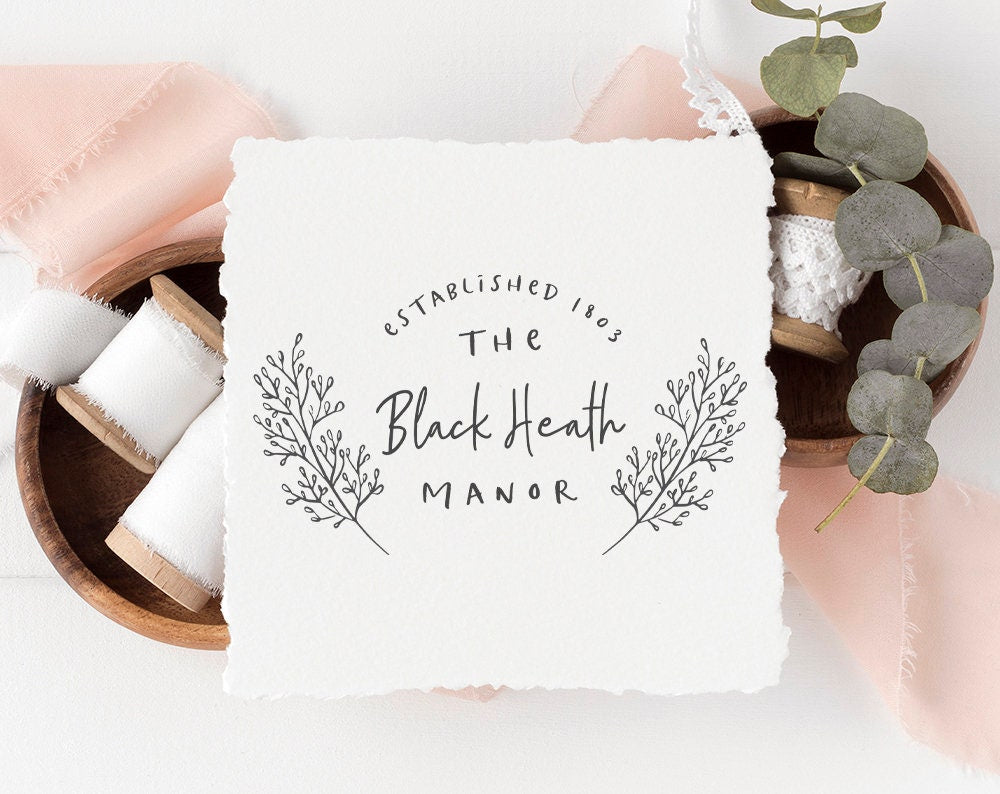 The Black Hearth Manor | Premade Logo Design | Farmhouse, Hand Drawn, Branch
