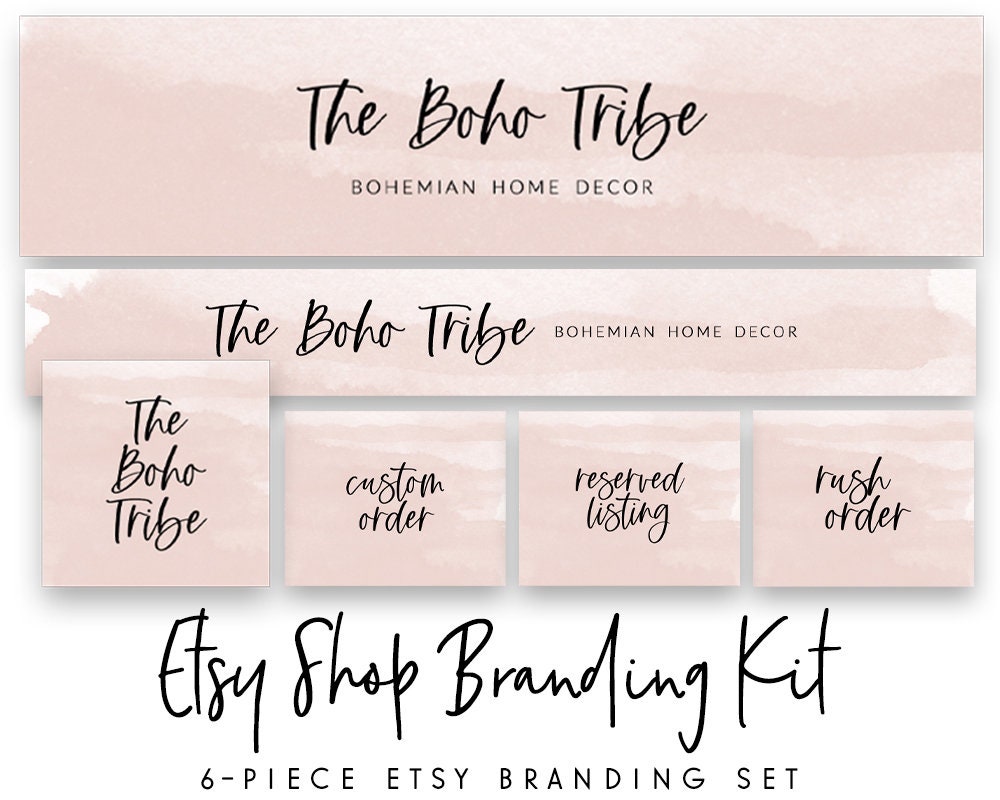 This Etsy shop kit in a minimal neutral boho watercolor style is a quick and affordable way to set up your new Etsy business or refresh your current one!