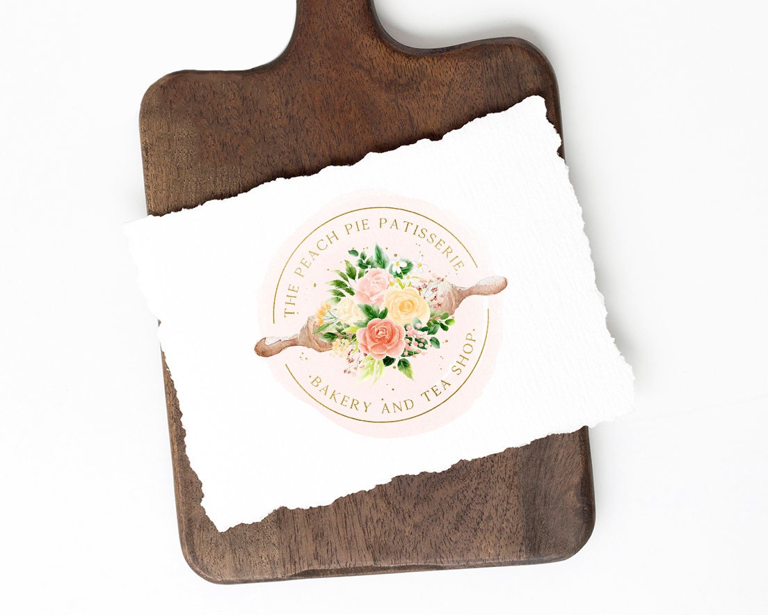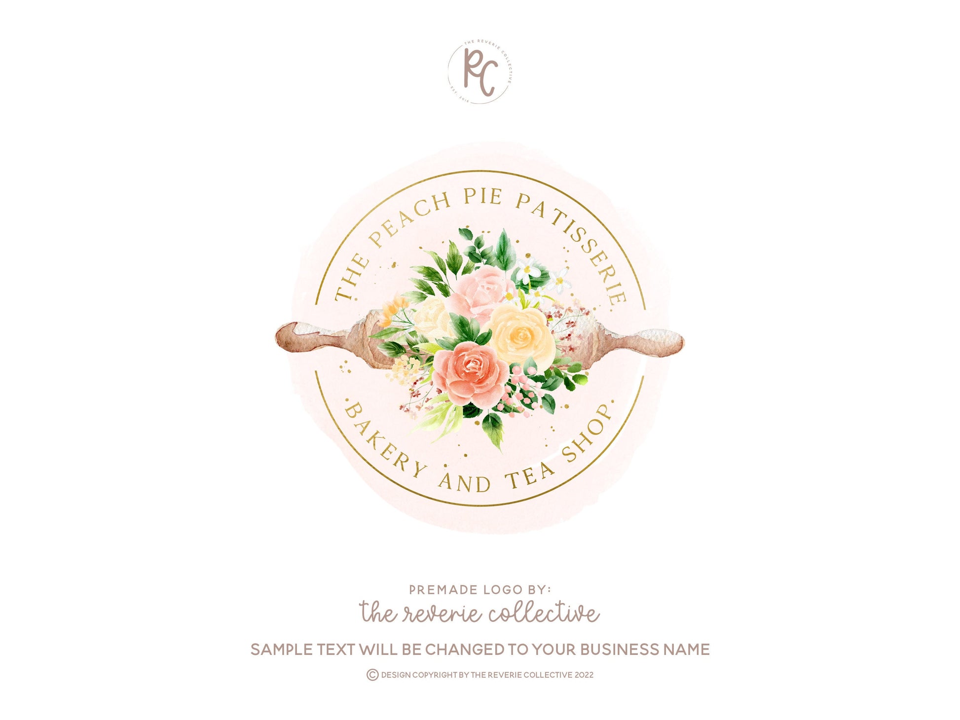 The Peach Pie Patisserie | Premade Logo Design | Rolling Pin, Bakery, Baking, Floral