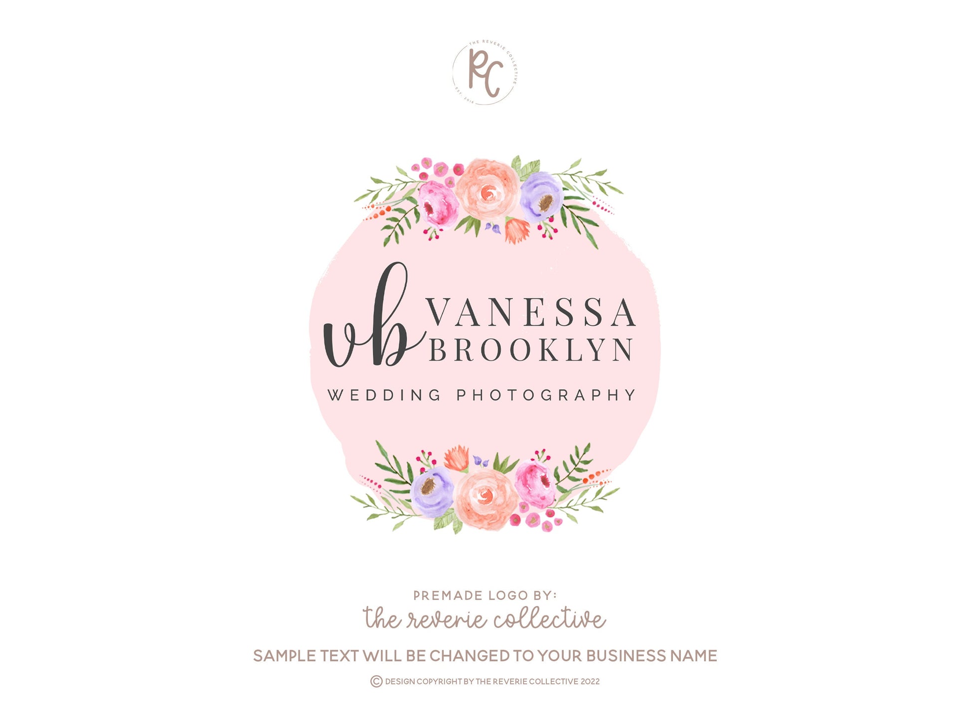 Vanessa Brooklyn | Premade Logo Design | Watercolor, Floral, Feminine, Pastel, Preppy