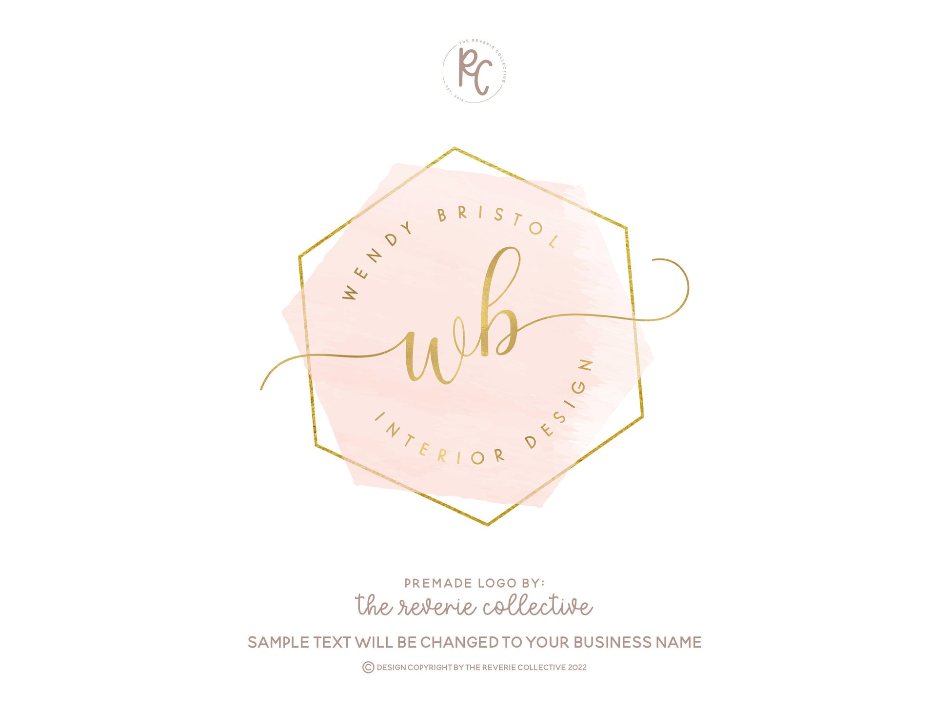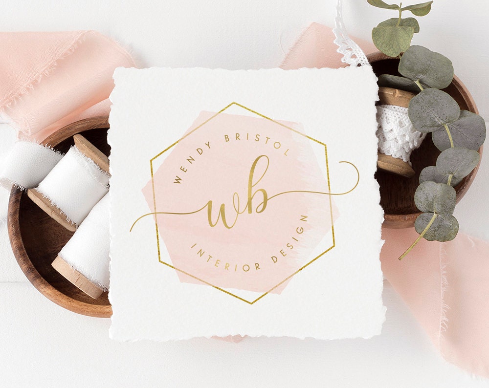Wendy Bristol | Premade Logo Design | Pink, Geometric, Gold Foil, Feminine, Monogram