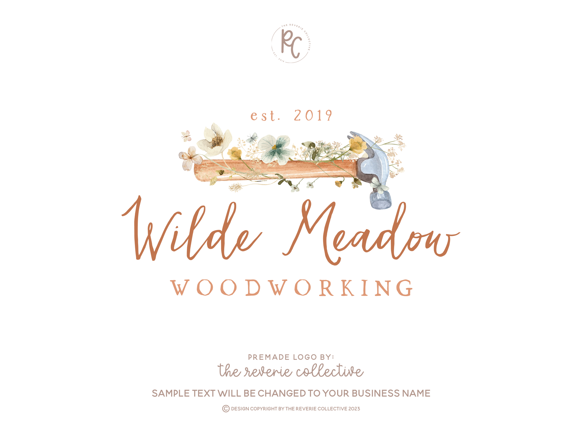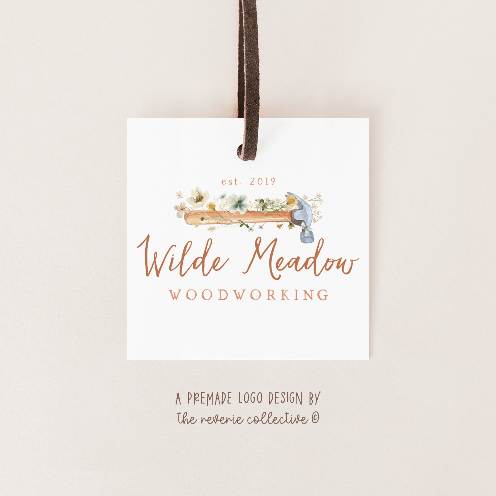 Wilde Meadow | Premade Logo Design | Hammer, Woodworking, Wildflower, Farmhouse