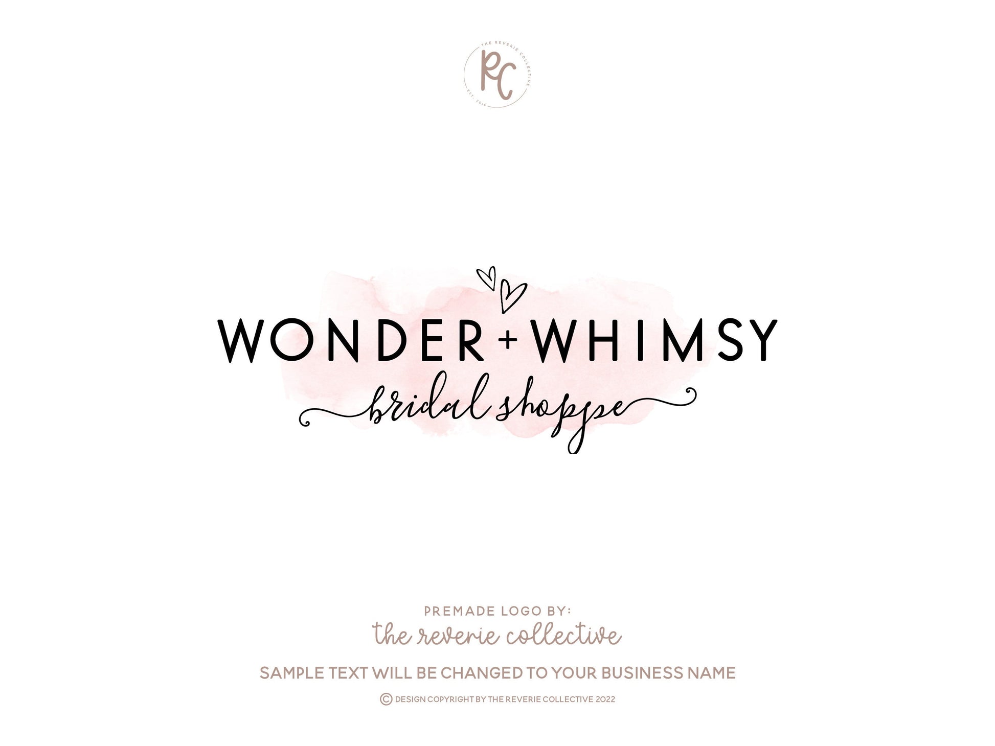 Wonder + Whimsy | Premade Logo Design | Watercolor, Hearts, Girly, Whimsical