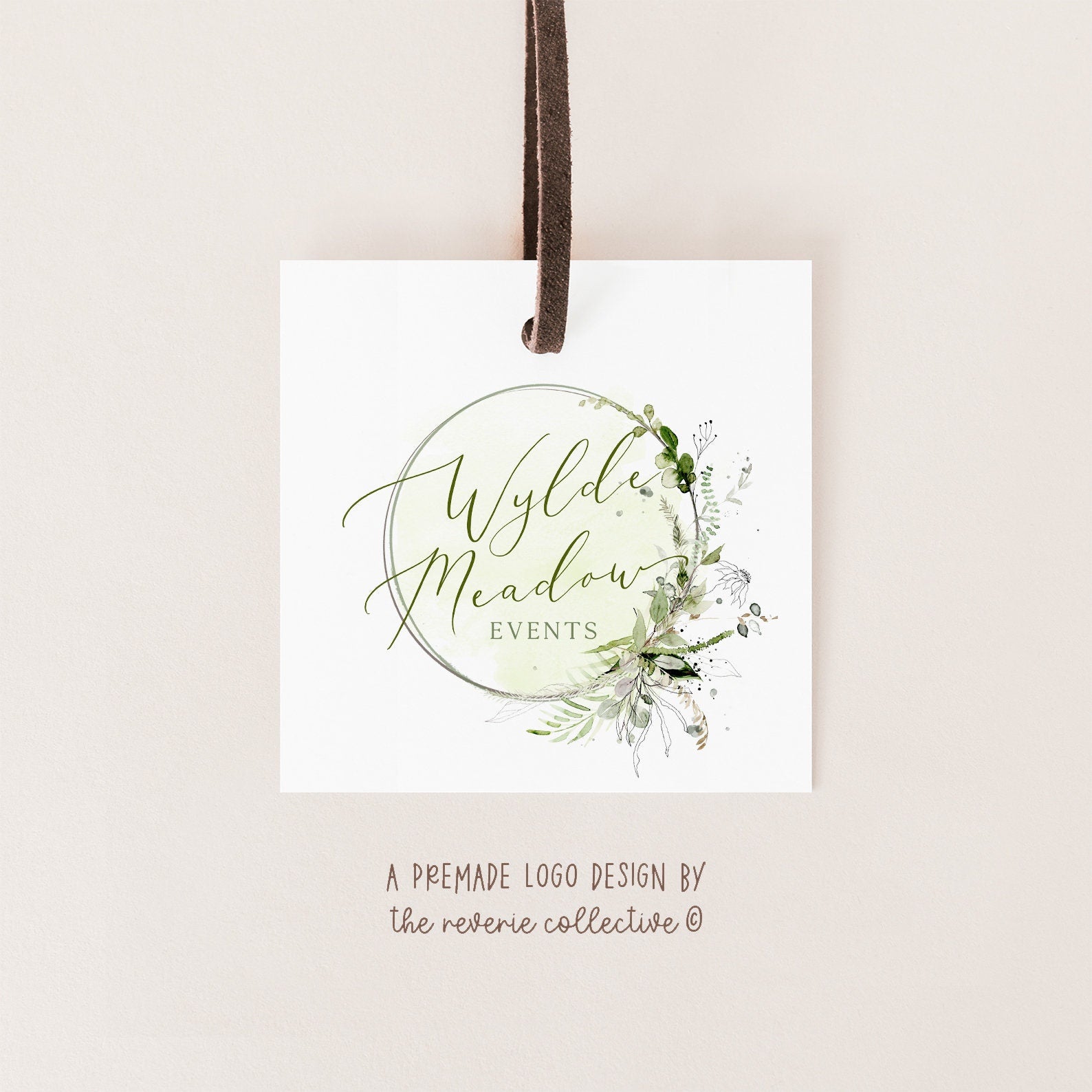 This premade logo design in a watercolor botanical greenery wreath style is a quick and affordable way to launch your business in just a few days!